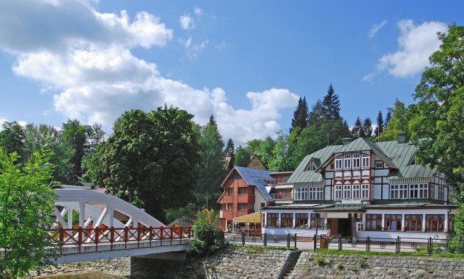 The path of this easy route runs on asphalt and paved surface and is suitable for trips with children. It starts at the Peace Square in Vrchlabí, where you head west from the Church of St. Lawrence. Do not miss the Žalý lookout tower.